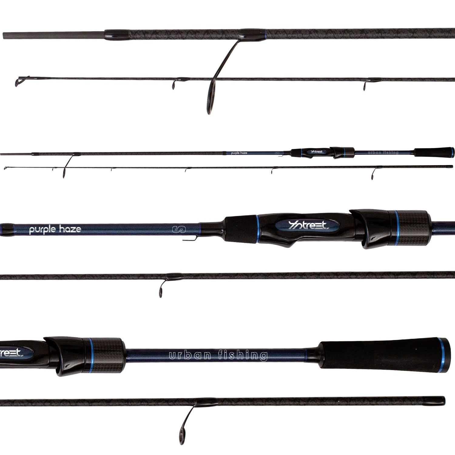 Eine echte Augenweide, das ist ein neues Mitglied der 4Street-Familie "Purple Haze S"! Der Buchstabe „S“ auf dem Blank symbolisiert das Spinnen und eignet sich bestens zum Angeln mit kleinen rutschenden Rollen der Größen 20 und 25. In der Hand liegt er federleicht, der sensible Blank überträgt Schwingungen der Köderbewegung, aber auch vom Feinsten Schüsse. Der Blank aus 24 Tonnen hochmoduliertem Carbon High Modulus Plus mit geflochtener Verstärkung garantiert nicht nur eine coole Optik, sondern verleiht der Rute insgesamt die nötige Stabilität im Kampf. Das Modell "Purple Haze" gibt es in der klassischen Spinnversion Spin (S) und auch in der Baitcast-Version (C), immer in zwei Längen.