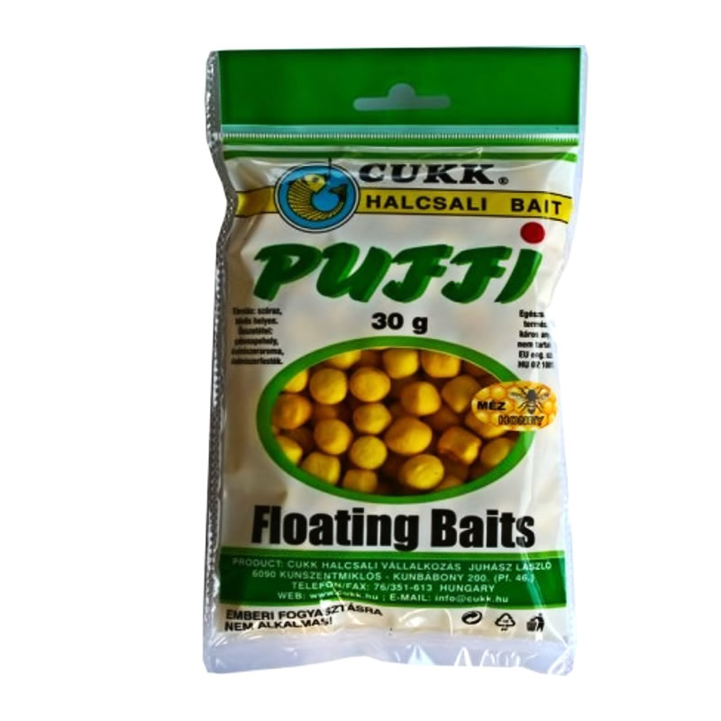 Puffi jest to przynęta pływająca, wolno nasiąkająca wodą. Doskonałe na łowiska z grubym pokładem mułu. Nie pogrąża się w mule i nie znika między kamieniami i roślinami. Doskonale nadaje się do zestawów spławikowych i gruntowych. Doskonałe do zestawów z włosem.