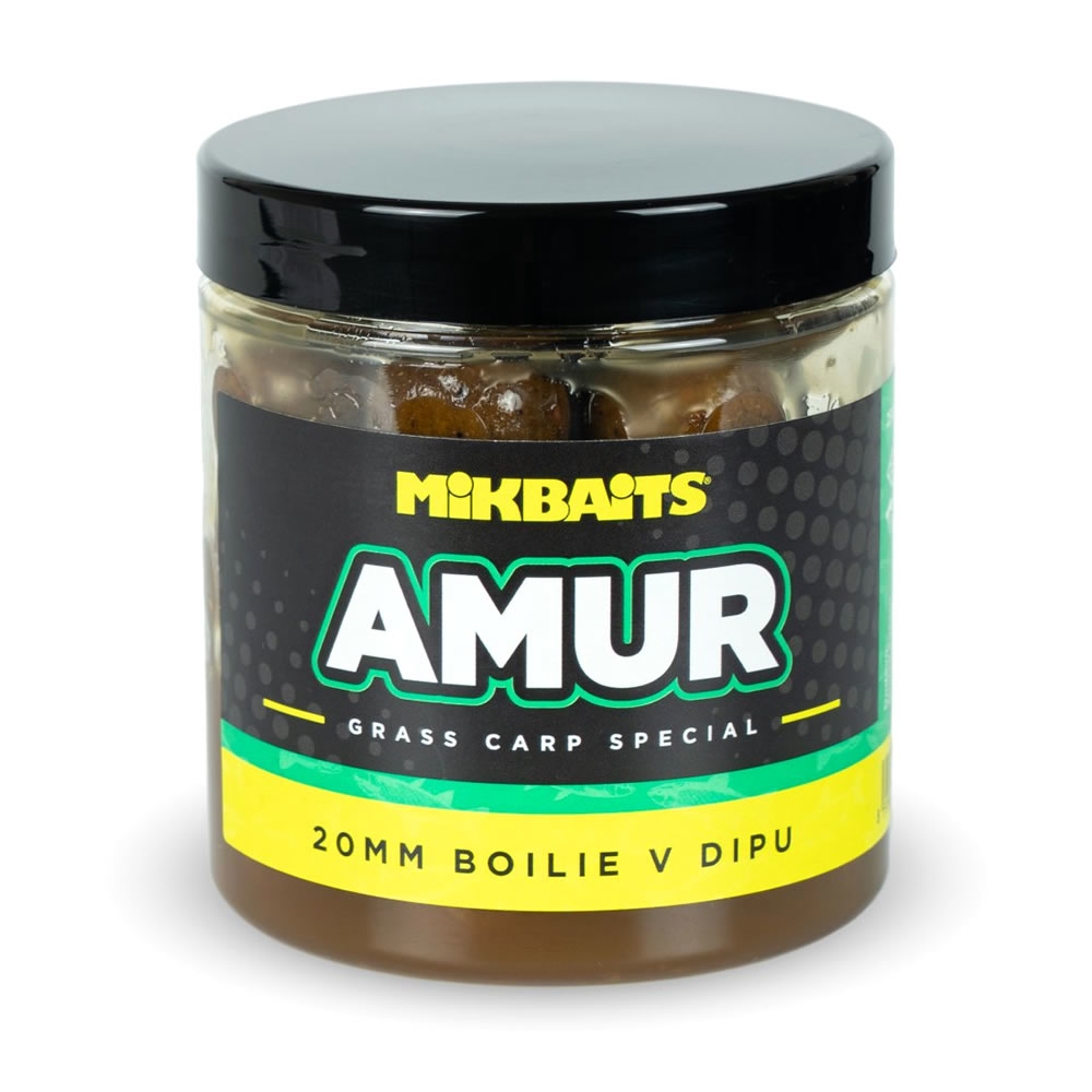 Seria Amur jest przeznaczona przede wszystkim do polowania na amur, ale jest równie skuteczna w przypadku karpi. Wszystkie produkty bazują na słodkiej i owocowej bazie, która okazała się dla nas najskuteczniejsza. Dostępne są różne rodzaje kulek proteinowych - pływające 14 mm, zrównoważone 14 mm Wafters, 16 mm i 20 mm tonące w dipu, a także pływająca kukurydza i ultra-pływający 15 mm Zig in dip. Spray ma na celu uatrakcyjnienie przynęt, ale można nim również spryskać wypełniony podajnik. Do nęcenia zalecamy stosowanie gotowanej kukurydzy w większych ilościach. Można do niego również dodać wzmacniacz Amur. Można go również używać do innych rodzajów przynęt, takich jak mieszanka metodyczna lub feeder. Następnie stosuje się bombę PVA wypełnioną wysokiej jakości peletkami, aby uatrakcyjnić przynętę, a także jako ochronę przed splątaniem podczas rzucania.