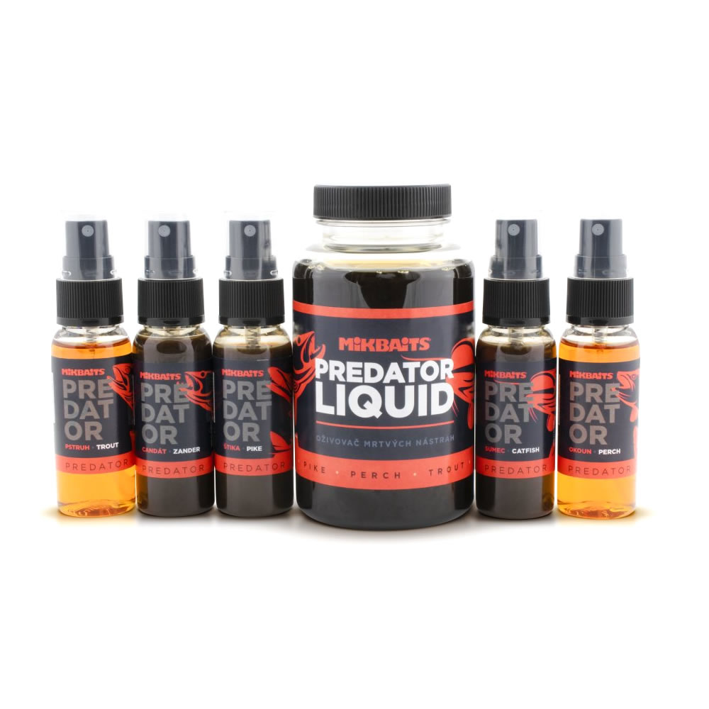 PREDATOR Spray przeznaczony jest do spryskiwania przynęt sztucznych (gumowych, ale także frędzli brokatowych, woblerów itp.), martwych (ryby) i innych (pellety,...) z dużą skutecznością na poszczególne gatunki ryb - szczupak, sandacz, okoń, sum i pstrąg. Zalecamy pozostawienie sprayu na chwilę lub nałożenie go wcześniej. Kuszący sygnał może wtedy wytrzymać wielokrotne rzuty. Z produktami PREDATOR sprawisz, że Twoje przynęty będą jeszcze bardziej atrakcyjne, ponieważ nadasz im mocny zapach i świetną atrakcję dzięki aminokwasom i innym składnikom, które je tworzą.