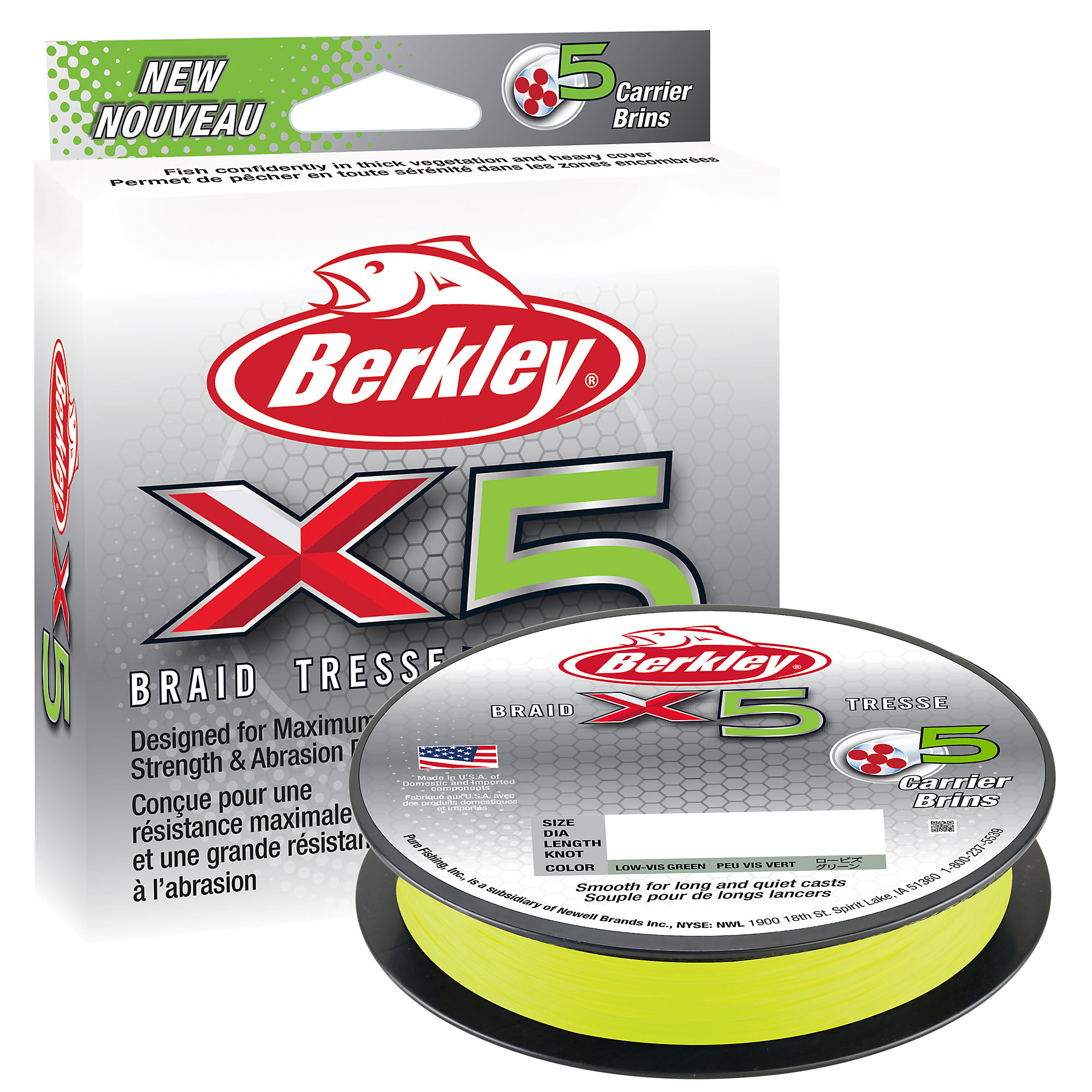 Berkley® x5 Braid je konvenční šňůra s využitím 100% PE vláken. Populární jsou 4 splétané prameny a Berkley® x5 jej posouvá na další úroveň přidáním dalšího pramene, díky čemuž je 5x silnější, spolehlivý a zkonstruovaný tak, aby prořízl plevel a vegetaci.