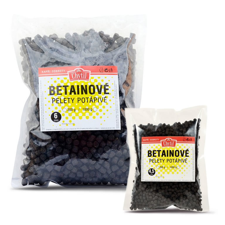 Betainové pelety jsou vhodné pro použití do krmných směsí, PVA sáčků apod. Obsahují vysoké procento tříděných rybích mouček + betain, který rybám vytváří silný potravinový signál.