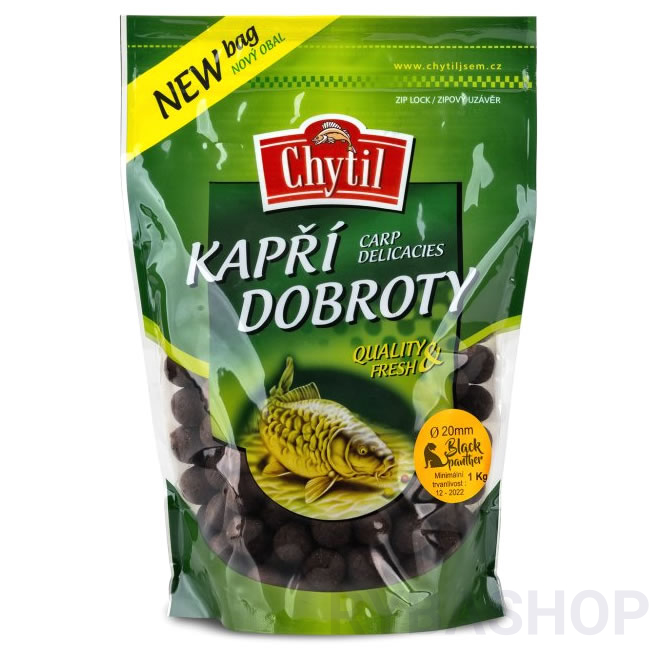 Samotná směs vyniká svojí hrubší strukturou, obsah tříděných rybích mouček je rovných 50%, další část tvoří kvalitní pepř, který dodává boilie svoje selektivní účinky. Množství pepře není nijak přehnané, ale ve výsledku s boilie vystupuju dostatečně. Zbytek suché směsi tvoří objemové suroviny, mléčné proteiny, mořská řasa a vaječiny. Kuličku dotváří skvělá šťavnatá broskvová esence a oblíbený esenciální olej černý pepř.