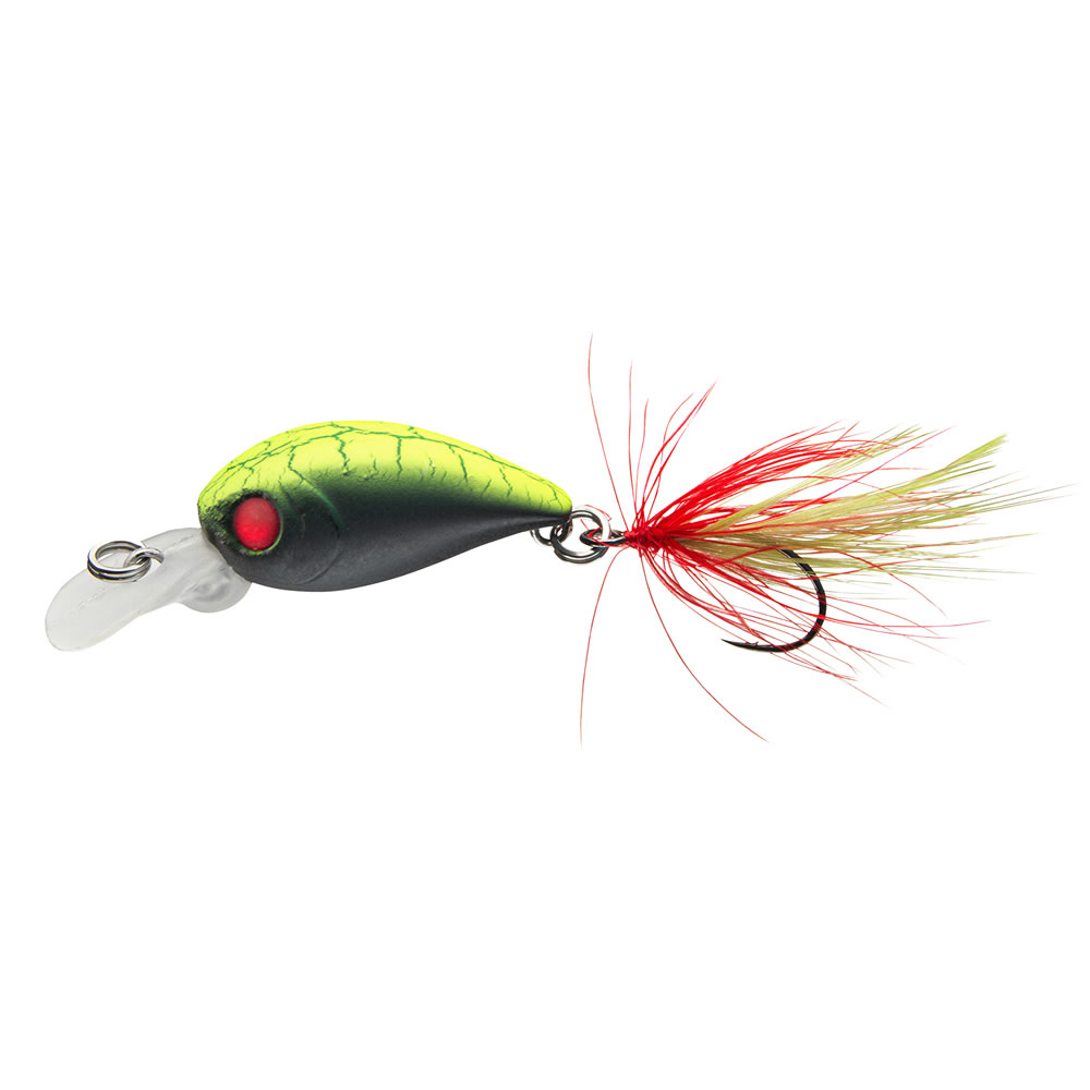 Mini nástraha pro ultra lehký lov pstruhů, okounů a tloušťů. Dodáváno s jednoháčkem a velmi lákavým peříčkem. I přes malou velikost, ale díky svému kompaktnímu, oblému tvaru, s touto nástrahou velmi snadno a přesně nahodíte do požadovaného místa. Velmi aktivní a variabilní akce.