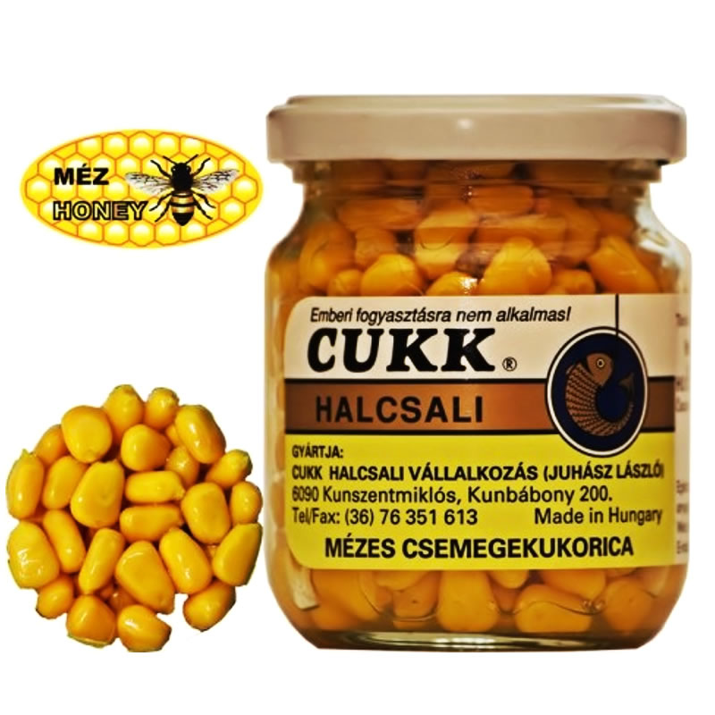Výběrová nakládaná kukuřice bez nálevu, barvená. Různé druhy speciální kukuřice pro lov kaprovitých ryb. Velmi dobře drží na háčku, při napichování nepraská. Tvrdost a odolnost zrnek proti háčkům jsou ideální. Po otevření a pečlivém opětovném uzavření je lze používat nepřetržitě měsíce bez rizika znehodnocení.