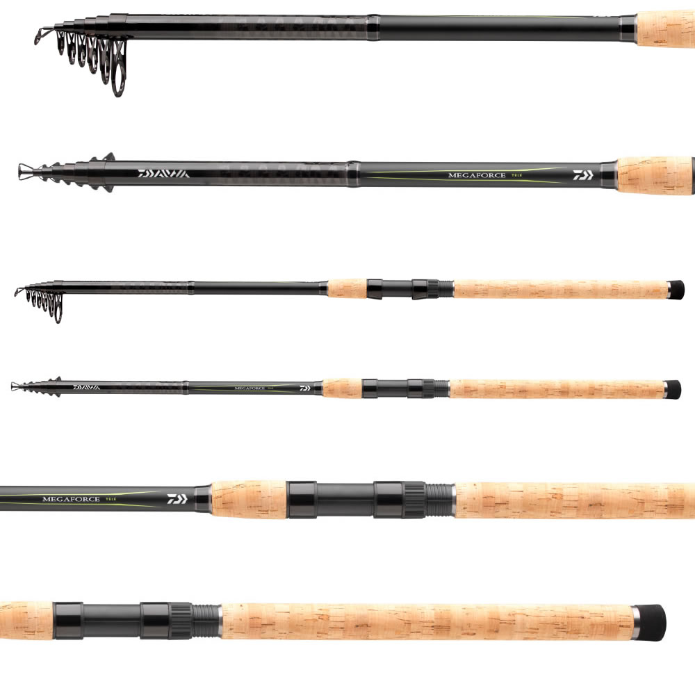 Teleskopické pruty Megaforce s délkou až 3.00m vykazují transportní délku pouze 58cm až 69cm a lze je tedy pohodlně přepravovat a skladovat. U vody jsou tyto pruty rychle připraveny k akci. Modely od 3.30m do 4.20m byly navrženy s delšími díly, aby byla zachována dobrá křivka ohybu a nahazovací vlastnosti i na těchto dlouhých prutech. Prémiový blank z uhlíkových vláken HMC+ teleskopických prutů Megaforce je vybaven lehkými keramickými očky z oxidu titanu, která jsou použitelná s pletenými šňůrami i monofilními vlasci. Osvědčené sedlo navijáku DPS spolehlivě zajistí rybářské navijáky všech velikostí a spolu s korkovou rukojetí dodává těmto prutům klasický a úctyhodný celkový dojem.