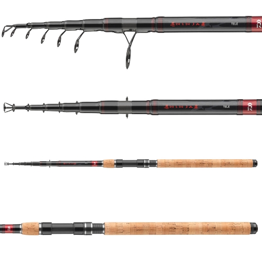 S pruty Ninja X Tele nabízí DAIWA širokou škálu univerzálních teleskopických prutů s krátkými díly. Pruty z řady Ninja X Tele se svými blanky z prémiových uhlíkových vláken a vázanými očky vykazují akci blízkou akci dělených prutů – rychlé akce s rychlým návratem do původní polohy umožňují přesné náhozy a dobrou kontrolu nástrahy při vláčení. Pevné špičky z uhlíkových vláken jsou extrémně odolné a dokonale ladí s harmonickou akcí blanků. Tyto teleskopické pruty umožňují při vláčení cítit kontrolu nad nástrahou, kterou lze jen těžko odlišit od dělených prutů. Silná páteř se špičkovou akcí spolehlivě absorbuje klepání hlavou velkých ryb a poskytuje jistotu při zdolávání. Ninja X Tele se samozřejmě velmi dobře hodí i pro lov na plavanou téměř všech našich sladkovodních ryb. S pruty Ninja X Tele získáte prémiové dobře vyvážené lehké teleskopické pruty za senzační cenu.