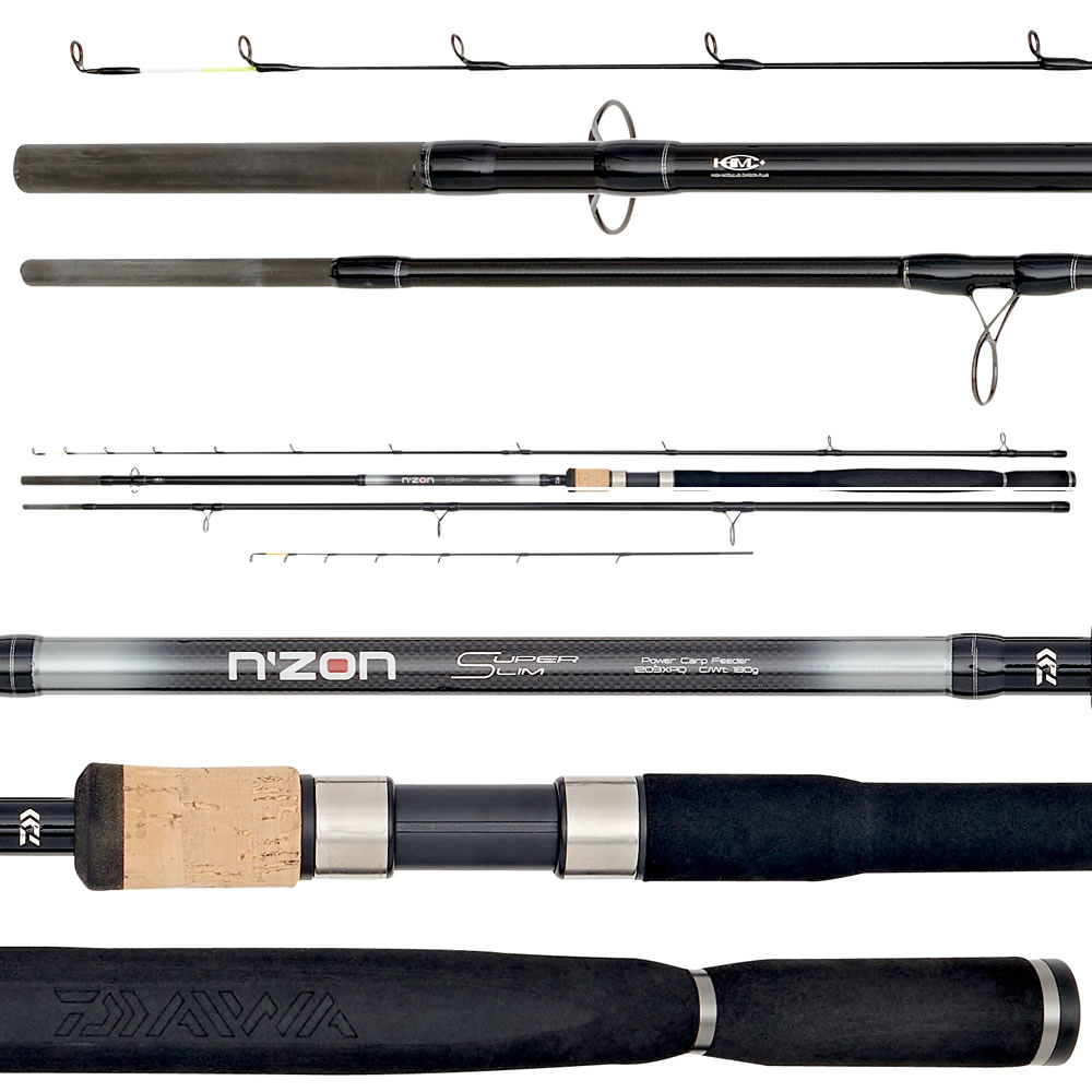 Pruty N‘Zon Super Slim Feeder nabízejí optimální nahazovací vlastnosti a nejvyšší odolnost s velmi tenkým průměrem blanku. Pruty této široké řady jsou mimořádně dobře vyvážené! Blank HMC+ z uhlíkových vláken se okamžitě po náhozu vrací do původní pozice a umožňuje tak obzvláště přesné nahazování. Rukojeť Armlock výrazně zvyšuje komfort při zdolávání silných ryb. Série N‘Zon Super Slim pokrývá všechny druhy moderního feederového rybolovu. Najdete zde pruty pro lehký method feeder a lov na malé i velké vzdálenosti. Také pro lov v silných proudech i pro lov velkých kaprů obsahuje tato řada vhodný model.