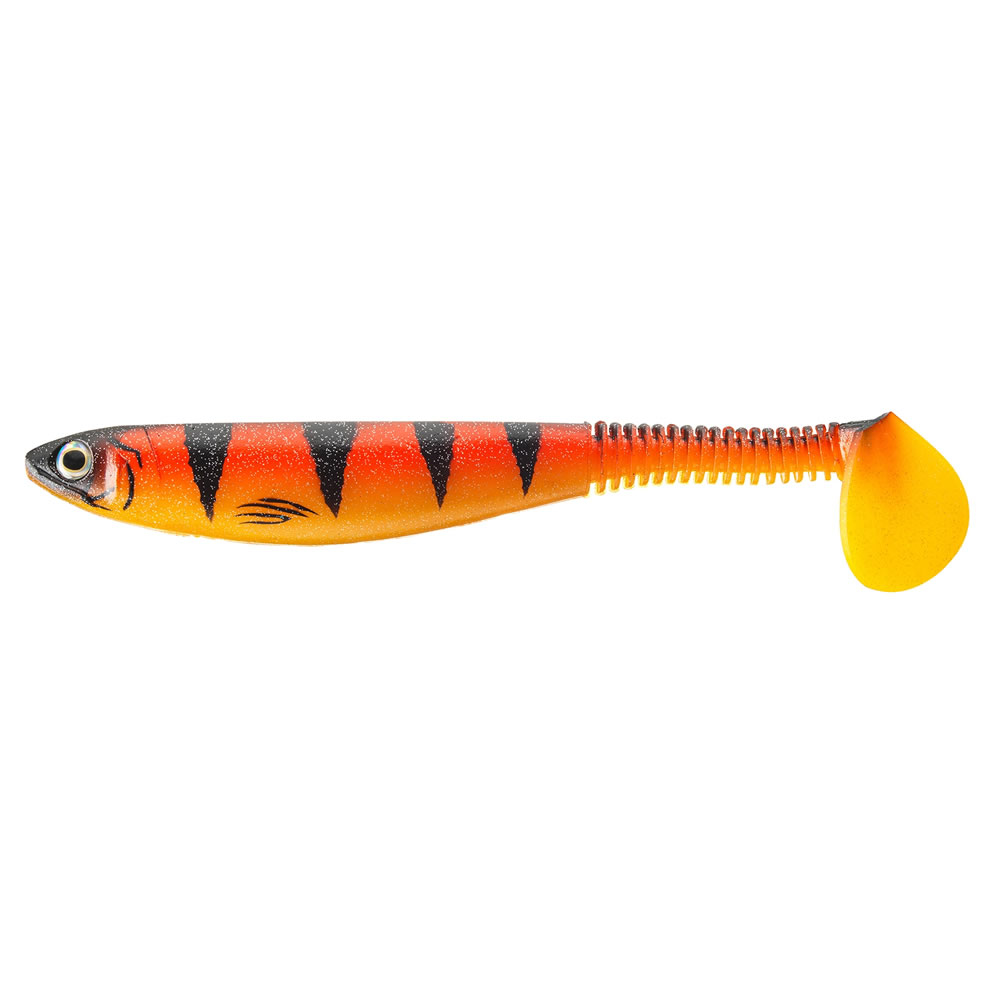 Tato velká gumová nástraha byla speciálně vyvinuta pro lov štik a sumců. Díky speciálnímu žebrování v zadní části tělíčka se krásně hýbe i při velmi pomalé prezentaci – ideální pro lov štik, když je studená voda, nebo tehdy, když jsou dravci líní útočit. Do žebrované části nástrahy můžete přidat atraktor, čím zvýšíte její atraktivitu.