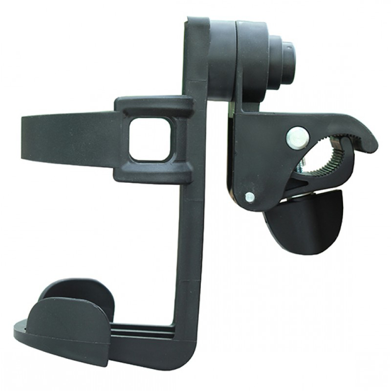 Držák na nápoje s jednoduchou a rychlou montáží je univerzální a lze jej použít na jakékoliv kempingové křeslo nebo lehátko. Vyrobený je z odolného a poddajného materiálu. Průměr nádoby od 70 do 85mm. Rotace držáku 360 stupňů.