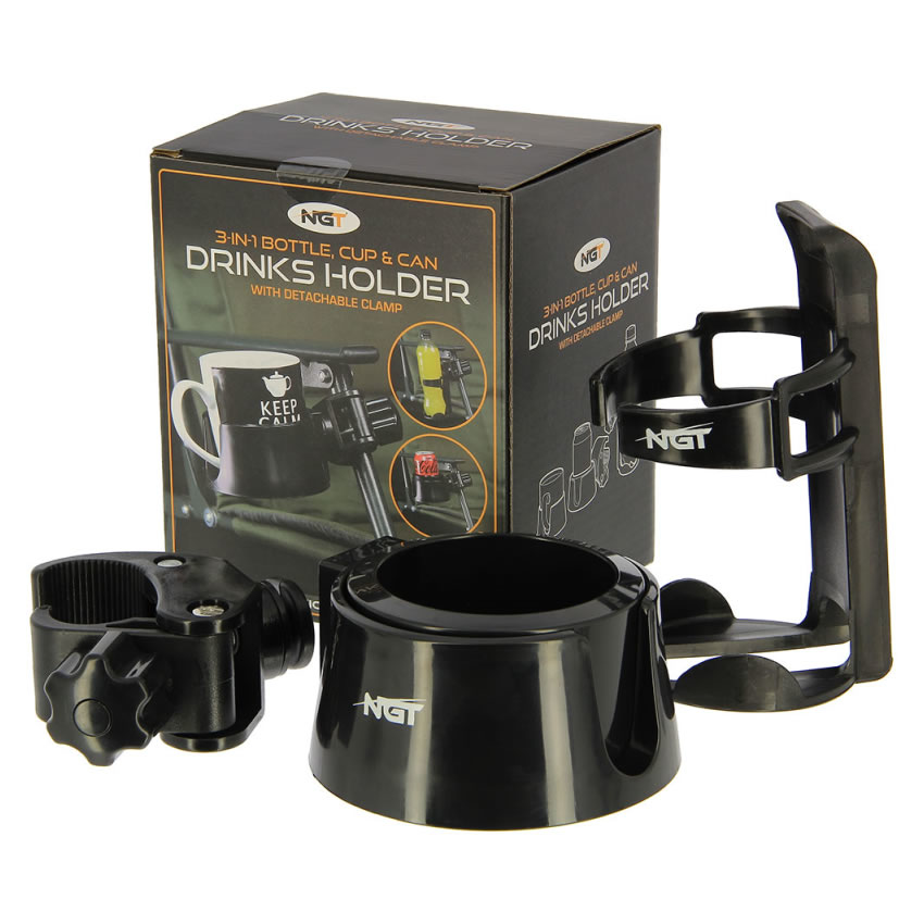 Držák nápojů od britské značky NGT 3 v 1 je velice praktický pomocník a poskytuje maximální pohodlí při rybolovu nebo kempování kdy potřebujete mít svůj nápoj vždy po ruce a uhasit žízeň. Držák je určen pro širokou škálu teplých i studených nápojů a velice snadno se připojuje k židlím, lehátkům a vlastně všude, kde jej budete potřebovat. Je jednoduše navržen tak, aby pojal širokou škálu nápojů od šálků na kávu přes plechovky a samozřejmě se dokonale postará i o Vašeho oblíbeného "lahváče".