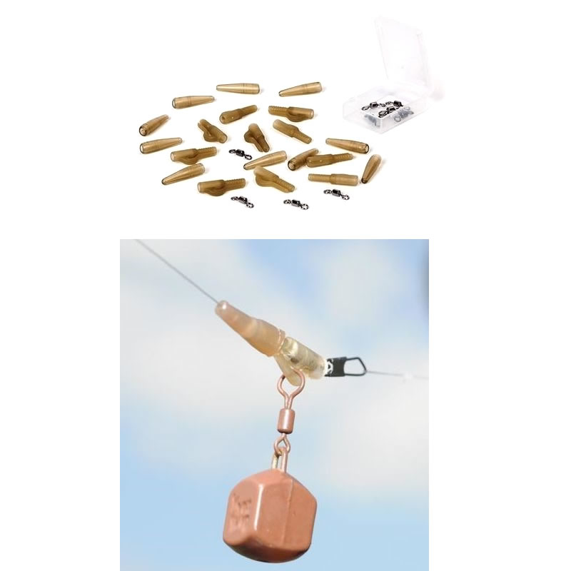 Mini Lead clip pro použití na feeder rybolov s mini obratlíky a převlekami. Závěska byla vyrobena ze speciálního téměř nezničitelného materiálu! Nemusíte mít obavy, že by při náhozu došlo ke prasknutí! Na závěsce jsou závity pro našroubování převleku tail rubber,aby lépe držel. Unitř závěsky je speciální systém, který při vložení pevnostního obratlíku vel.14 zacvakne a tímpádem drží vaší koncovou montáž na pevno zafixovanou.