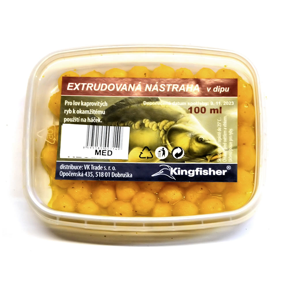 Extudovaná nástraha v dipu je nástraha, která na háčku vydrží mnohem déle než klasické extrudy. Jsou zdrojem značného množství atraktivních látek, které mají daleko větší vábící efekt s delším působením.