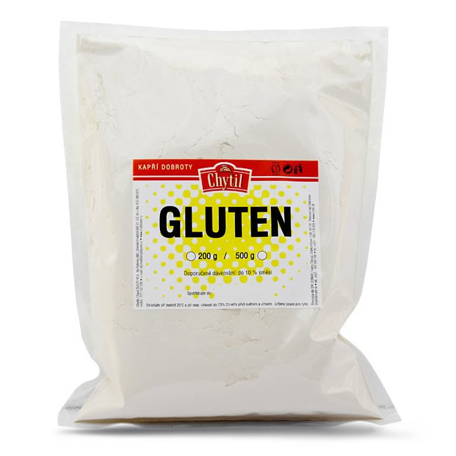 Gluten je pšeničný lepek, ceněný zejména pro jeho výtečné pojivové vlastnosti a zpracovatelnost ve směsi. Po uvaření zvyšuje tvrdost kuliček. Při vyšších množstvích přespříliš zatěžuje zažívání ryb.