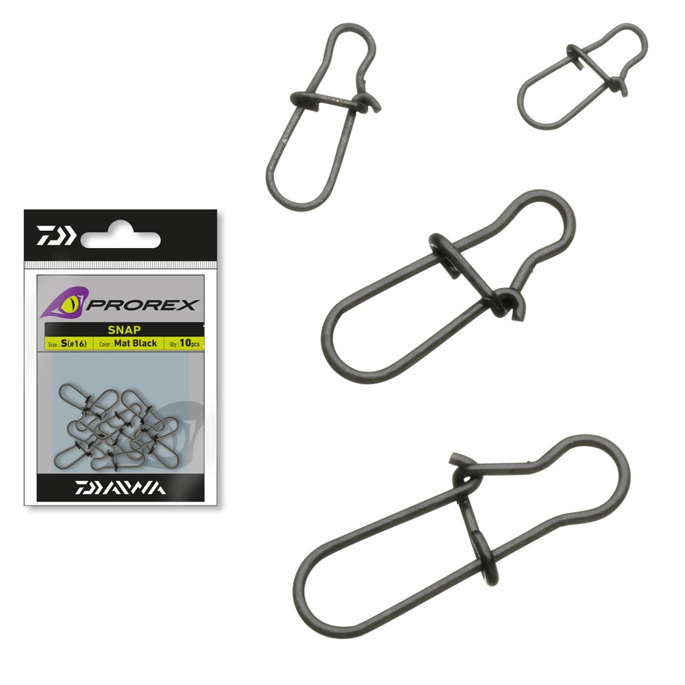 Prorex karabinky jsou vyrobené z extra tlusté a silné nerezavějící oceli a nabízí úžasnou lineární sílu. Tyto karabinky se neohnou ani pod velkou zátěží a nabízí optimální upevnění pro vaši nástrahu. Díky svému matnému černému povrchu jsou odlesky eliminovány a nehrozí tak vyplašení ryb.