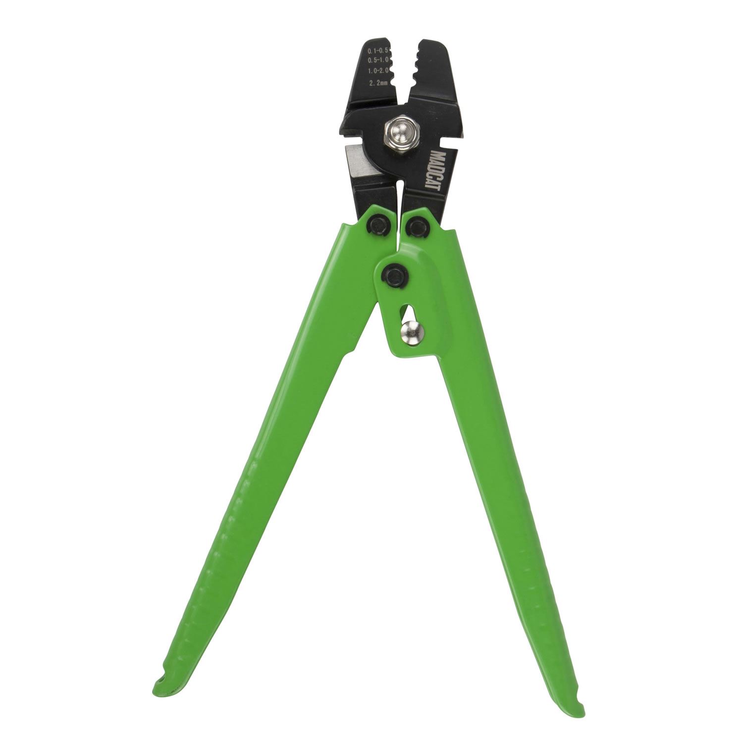 Krimpovací kleště z uhlíkové oceli ideální pro krimpování hliníkových spojek. Obsahují čtyři drážky pro různé velikosti spojek (0,1 až 2,2 mm). Vhodné pro tvorbu přívlačových návazců a návazců pro lov sumců na řekách. Extra dlouhé (25cm).