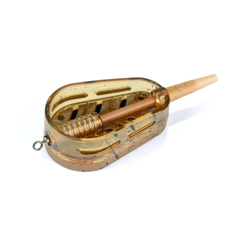 Luxusní, precizně zpracované method feeder flat krmítko s olověnou zátěží pro lepší fixací v proudící vodě. Představuje dokonalé sloučení method a pellet feederového lovu. Důmyslné tělo z jednoho dílu je vhodné i pro ty nejnáročnější situace. Otvory v základně a v bočních stěnách umožňují snadné plnění, rychlé uvolnění návnady, vyvýšené strany jsou speciálně navrženy tak, aby chránily návnadu při nárazu a udržely ji pohromadě. Tento nový desing umožňuje dokonalý dopad při každém hodu. Potaženo odolnou vrstvou Camo, která zajišťuje dokonalé maskování na většině typů dna. Krmítko je primárně určeno k použití v průběžné sestavě, avšak za pomocí obratlíku či gumového korálku se může zafixovat a tím nám vznikne buď pevná nebo poloprůbežná montáž. Vnitřní trubička je přesně navržená pro zafixování pevnostního obratlíku vel. 8, který je součástí každého balení.
