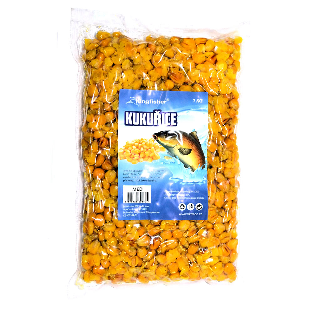 Tepelně upravena ochucená kukuřice k okamžitému použití. Lze ji použít přímo na háček jako nástrahu, případně vmíchat do vnadící směsi či method mixu.