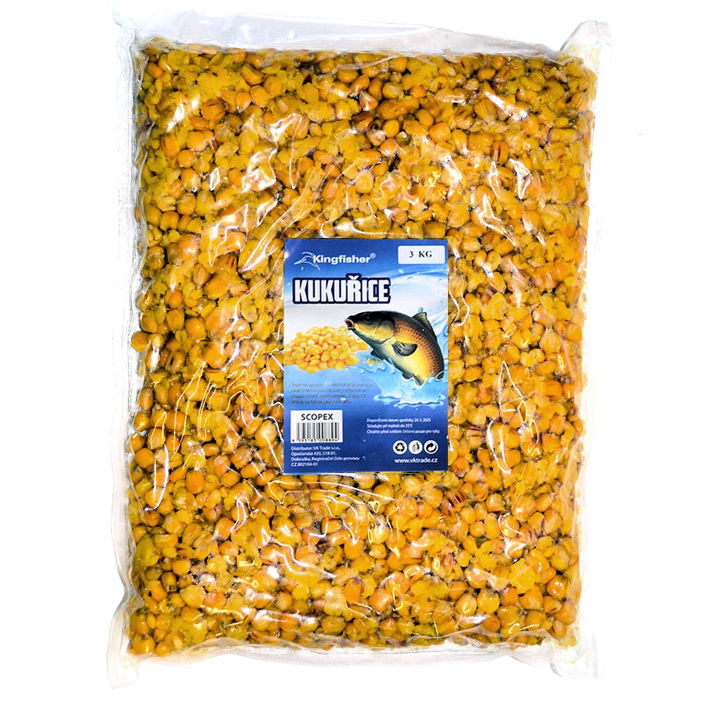 Tepelně upravena ochucená kukuřice k okamžitému použití. Lze ji použít přímo na háček jako nástrahu, případně vmíchat do vnadící směsi či method mixu.
