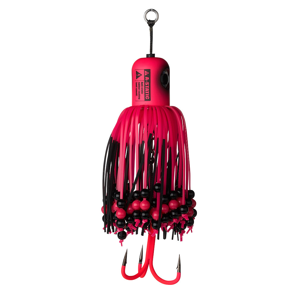 Chobotnička Madcat A-Static Clonk Teasers. Antistatická verze originálního Madcat Clonk Teaser se speciálním gumovým potahem minimalizujícím elektrické pole, které plaší sumce. Upozornění: Antistatický gumový potah se může vlivem používání opotřebovat.