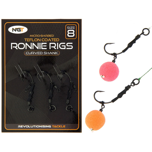 Zcela nová, efektivní montáž od anglické značky NGT. Jedná se o montáž určenou především pro lov s plovoucí nástrahou těsně u dna. S Ronnie Rigem bude váš lov vždy o level úspěšnější. Balení obsahuje tři hotové montáže. Podstatou montáže je velmi ostrý háček, který pomocí otočného obratlíku (nástraha je volně pohyblivá) několikanásobně zvýší pravděpodobnost zapíchnutí háčku v rybí tlamě. Dalším prvkem montáže je obratlík na háčku s pojezdnou zarážkou pro vymezení prostoru pro nástrahu.