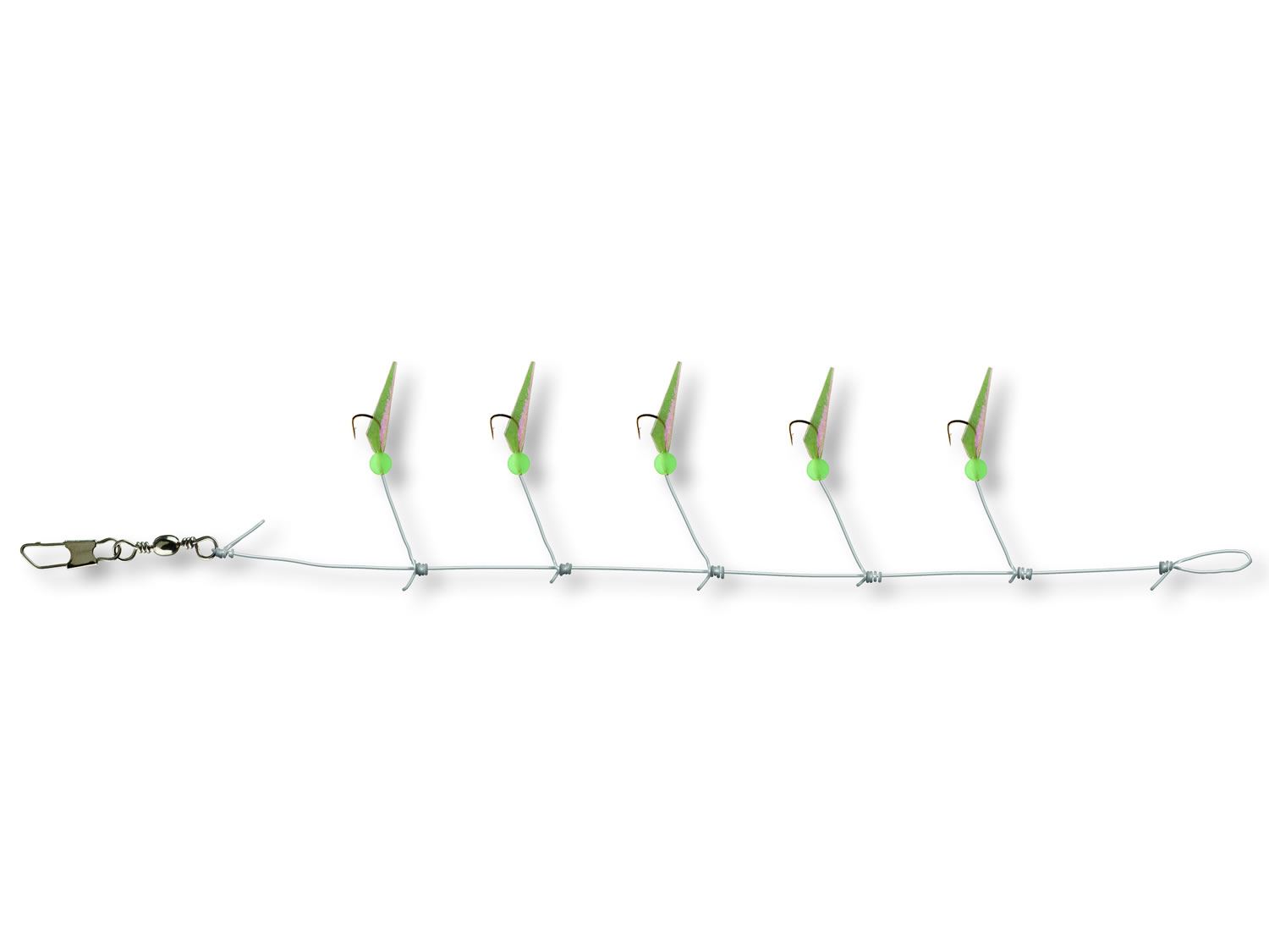 Návazec „Micro“ s pěti háčky, svítícím korálkem a pravou japonskou rybí kůží. Perfektní na lov smáčků.