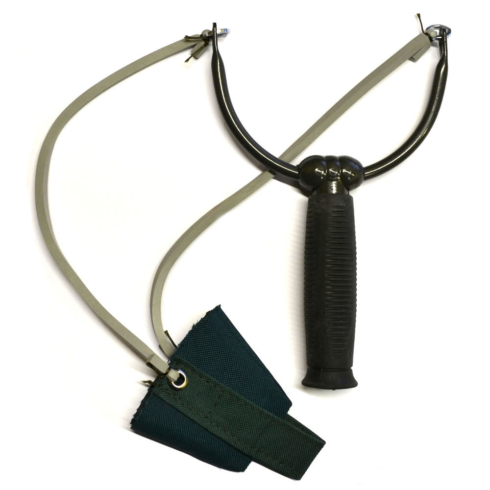 Vysoce kvalitní kovový prak s plátěným košíčkem a leteckou gumou 5x5mm s dlouhým dostřelem. Doporučujeme.