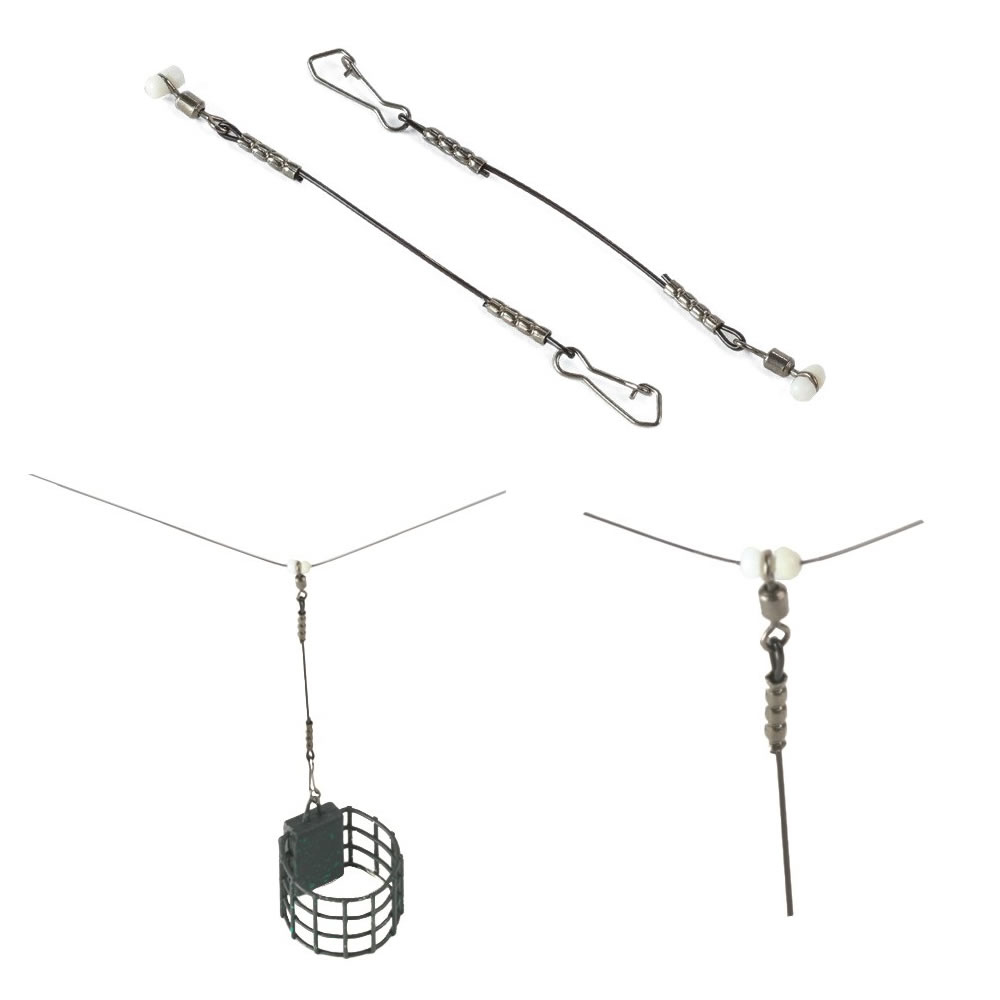 - Kvalitní feederový průjezd s karabinami a kluzným obratlíkem - náhrada za klasické "anti-tangle"