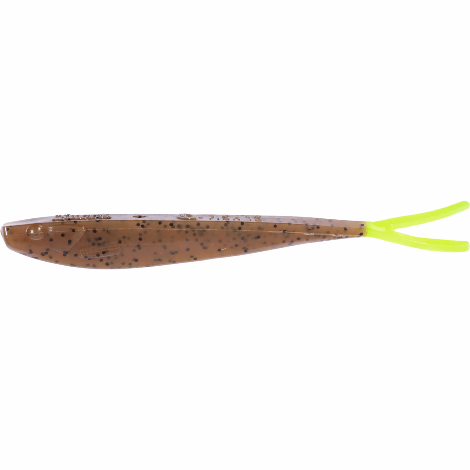 Gumová rybka se smáčkovým (vidličkovým) ocasem! Vylepšená a daleko dráždivější oproti mnoha „No Action“ gumám, to je originální Mann´s Fine-Fish. Nepřehlédnutelné štíhlé tělo se zploštělým hřbetem vyvolává při jigování ve fázi klesání ono velmi podstatné chvění nástrahy. Nezaměnitelný tvar ocasu ve tvaru písmene “U” není příliš rozdělen a konstruován do špičky, zachovává si ale neustále svůj tvar a sílu materiálu v ocasu. To vše s cílem vytvářet “líné” pohyby odpovídající chování poraněných potravních rybek. Tip pro použití: vertikální lov, jigování, Drop-Shot, Texas a Carolina návazce.