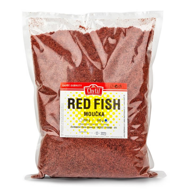Pronikavě vonící moučka. Vyrábí se velmi jednoduše - drcením a pak jemným mletím red-fish pelet. Má vysoký obsah olejů ( 30% ).