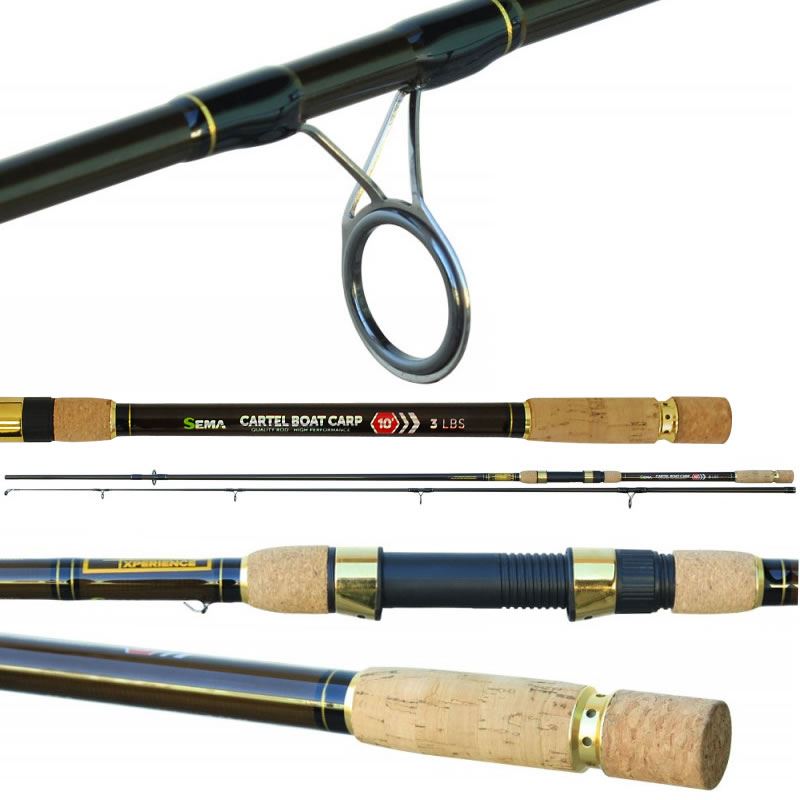 Cílený lov velkých kaprů z lodě je čím dál populárnější. Je to pochopitelné, neboť ne všechny příbřežní partie umožňují díky vegetaci manipulaci s rybářským prutem – o postavení stojanu či bivaku ani nemluvě. Vlastní-li rybář loď a na tom „jeho“ revíru je lov z loďky povolen – může si zvolit ideální loviště dle libosti. Jenže – manipulace pruty od délce např. 360 cm není na lodi zrovna jednoduchá. Proto se kapraři – uvažující o lovu kaprů z lodě - poohlížejí po kratších kaprových prutech. A právě pro ně je určen prut Cartel Boat Carp. Dvoudílný uhlíkový speciál určený převážně pro lov kaprů z lodě je nabízen ve dvou variantách: délka 270 cm s test. křivkou 2.75 lb a délka 300 cm s testovací křivkou 3 lb. Velmi tenký, lehký prut s trnovou spojkou, kvalitními očky a korkovou koncovkou. Tato koncovka je navíc vybavena speciálním kovovým kroužkem v zápichu madla. Tento kroužek slouží k bezpečnému uložení prutu v zadní rohatince. Tento prut obstál v poměrně náročném testu na výbornou. A přesto, že se jedná o prut na chytání z lodě, velmi příjemně se s ním nahazuje. A to i těžší porce olova na kratší vzdálenost. Díky těmto parametrům lze konstatovat, že zejména model Cartel Boat Carp 300 cm/3lb lze použít i při lovu kaprů na řece. Kratší délka prutu má své výhody v zarostlých příbřežních porostech a manipulace s kratším prutem je v takových podmínkách méně komplikovaná. I kratší transportní délka tohoto prutu /156 cm/ skýtá svou výhodu z hlediska transportu. Necháme se tedy překvapit, zda pruty Cartel Boat Carp budou prioritně vyčuhovat z kaprařských lodí, nebo se časem objeví i ve stojanech specialistů na říční lov kaprů . Materiál blanku je z uhlíkových vláken s vysokým modulem pružnosti UHM (Ultra High Modulus). Třídimenzionální orientace vláken zesílená opletem a kevlarovou vrstvou dává prutu velmi vysokou pevnost, pružnost a odolnost při zachování velmi nízké hmotnosti. Pruty z tohoto materiálu - UHM Carbon Construction Kevlar Pattern Reinforcement - jsou určeny pro specialisty.