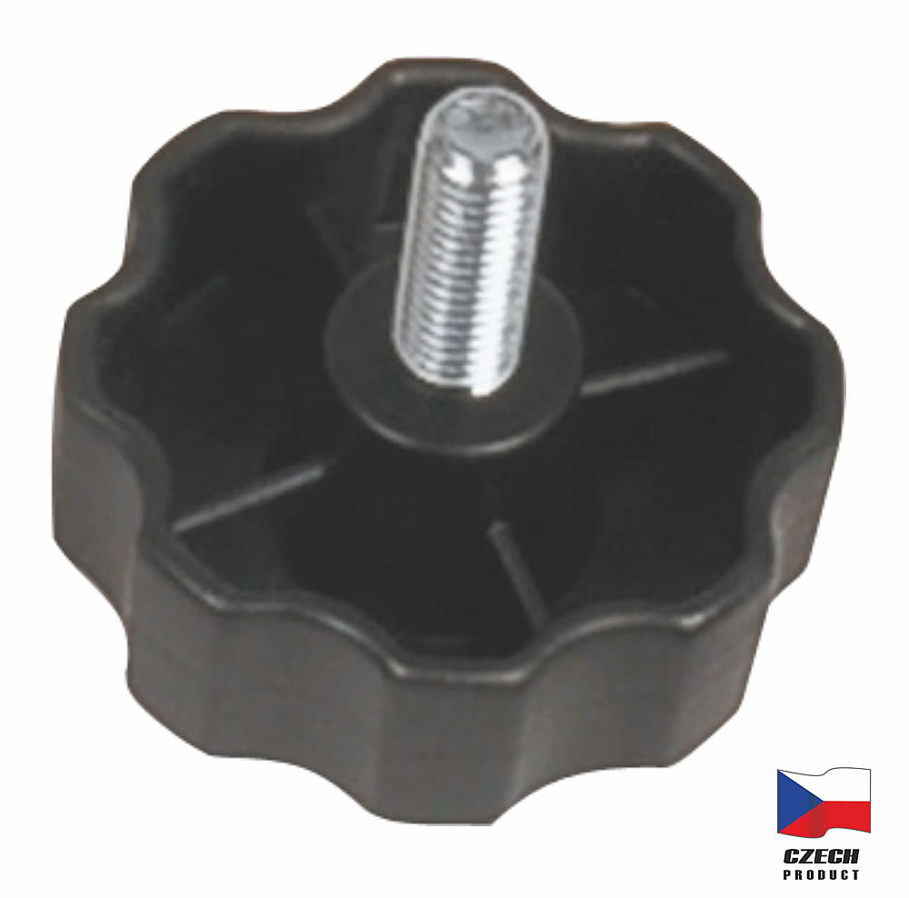 Utahovací šroub polohovacího kloubu křesílek a lehátek. Průměr šroubu je M10 + 40, průměr plastové hlavy je 60 mm.