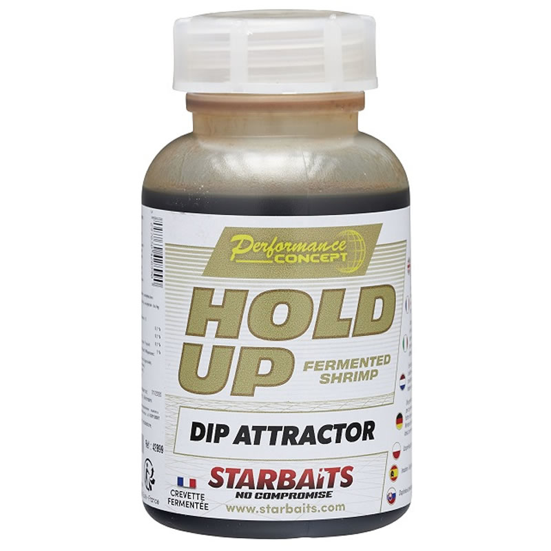 HOLD UP Fermented Shrimp (kvašená kreveta) je směsí frementovaného (kvašeného) krevetového masa v kombinaci s živočišnými složkami s extrémně silnou pachovou stopou. Dip zvýrazňuje pachovou a chuťovou stopu nástrahy (boilie, partikl, krmení).