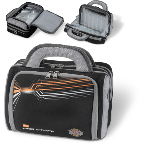 Série rybářských tašek Pro Staff přesvědčí nejmodernějším designem a prvotřídním zpracováním při zachování mírné ceny. Rig & Lure Bag je taška na doplňky s hlavním oddělením a speciálními prostory pro transport umělých nástrah a přihrádkou pro jednu krabičku na doplňky (je součástí balení), se zipy a transportním poutkem.