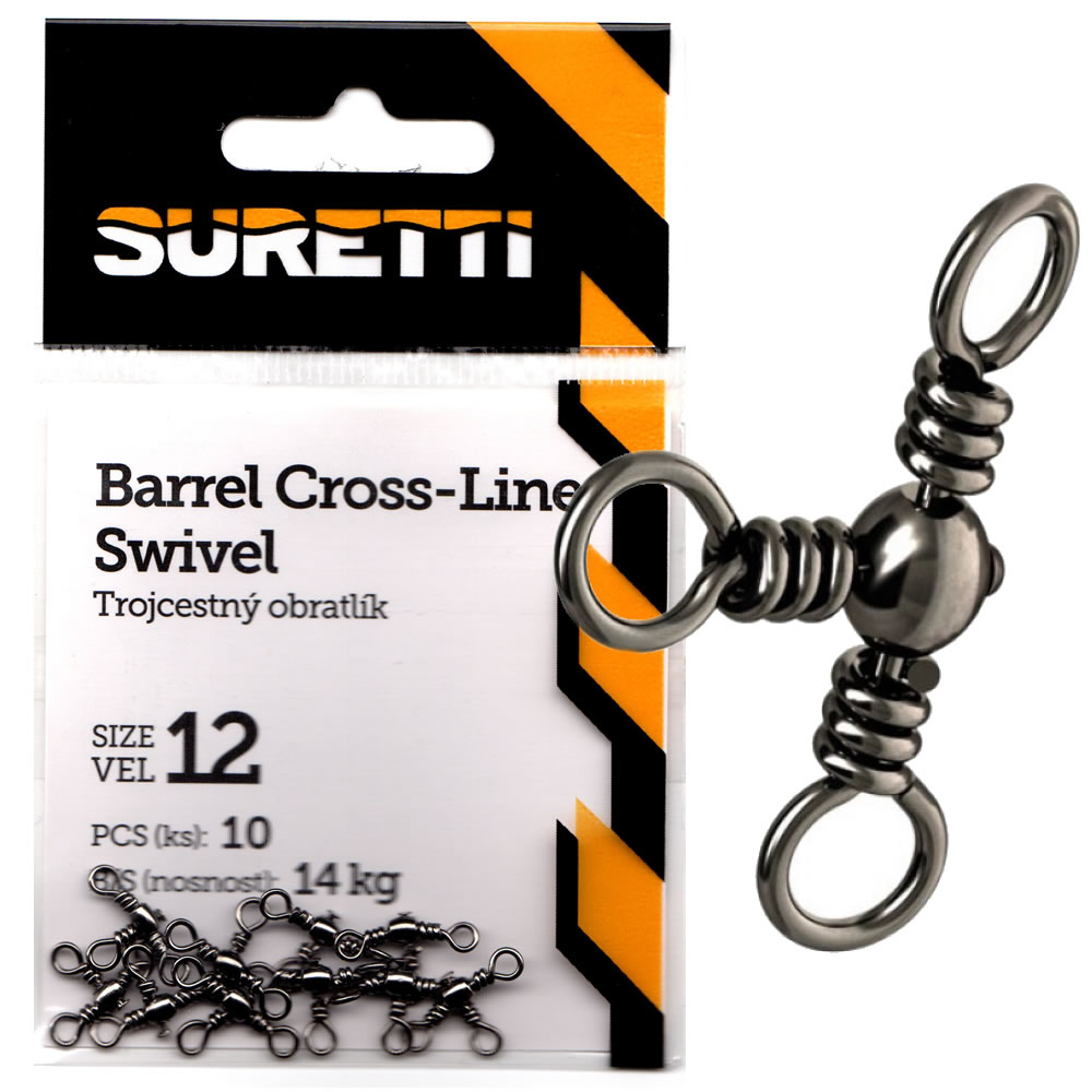 Kvalitní trojcestné obratlík pro použití zejména k navazování bočních návazců či závěsů a nebo k navázání dvou koncových udic kolmo ke kmenovému vlasci.