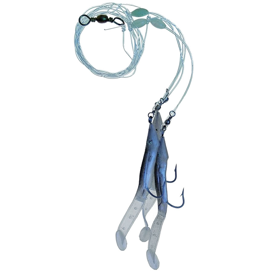Návazec obsahuje, pevný obratlík a karabinu k rychlé výměně spodního závaží, nebo pilkeru. Velikost háčků 4/0, síle návazce 0.6mm a délka 160cm.