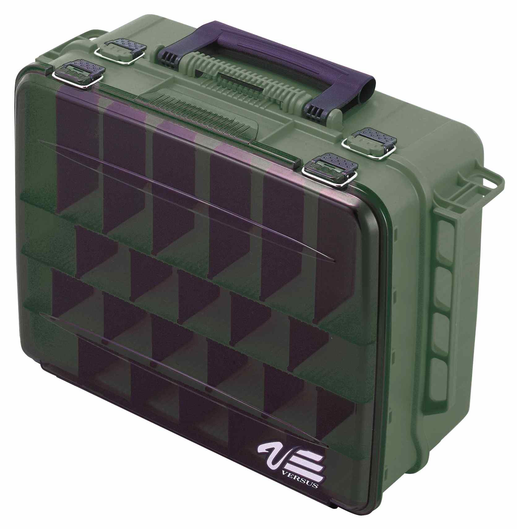 Vysoce užitný a kvalitní kufr japonské značky Versus vyroben z nárazuvzdorného polymeru. V horním úložišti jsou drážky do kterých se dají vložit přepážky a tím využijete každý koutek či škvírku pro vaše náčiní. Spodní úložiště obsahuje děliče které také můžete nastavit dle svého uvážení. Horní kryt je uzamykán dvojitým zámkem pro zabránění náhlému a nečekanému otevření kufru. Železné zámky v předu jsou z nerezové oceli proti rzi a opotřebování. Ze zdola kufru je guma proti klouzání na hladkém povrchu. Do kufru lze vložit krabičky typu SFC LL, SFC F, WG 9, WP 3, VS 820ND (NDM) a VS 4060.