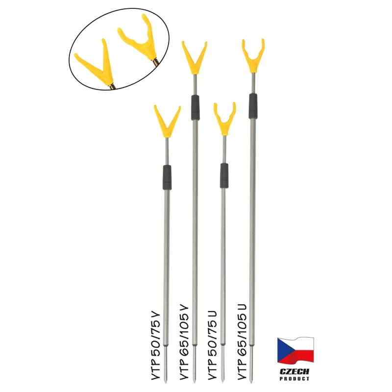 Teleskopické vidličky (U, V) z eloxovaného hliníku průměru 12/8 mm s prodlouženou špicí umožňující snadné zakotvení do tvrdého terénu. Vidlička je zakončena plastovým dílem ve tvaru "V" (přední) nebo "U" (zadní) žluté barvy. Plast je nárazuvzdorný a odolávající teplotním změnám.