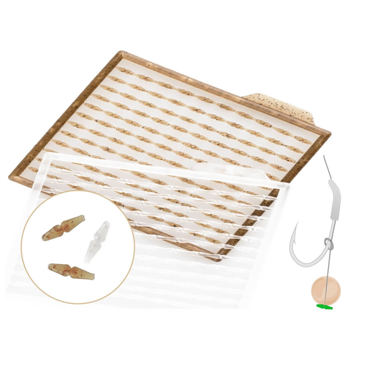 Balení obsahuje dvě sady zarážek: Jednu čirou a druhou transparentní hnědou pro dokonalé přizpůsobení nástraze.