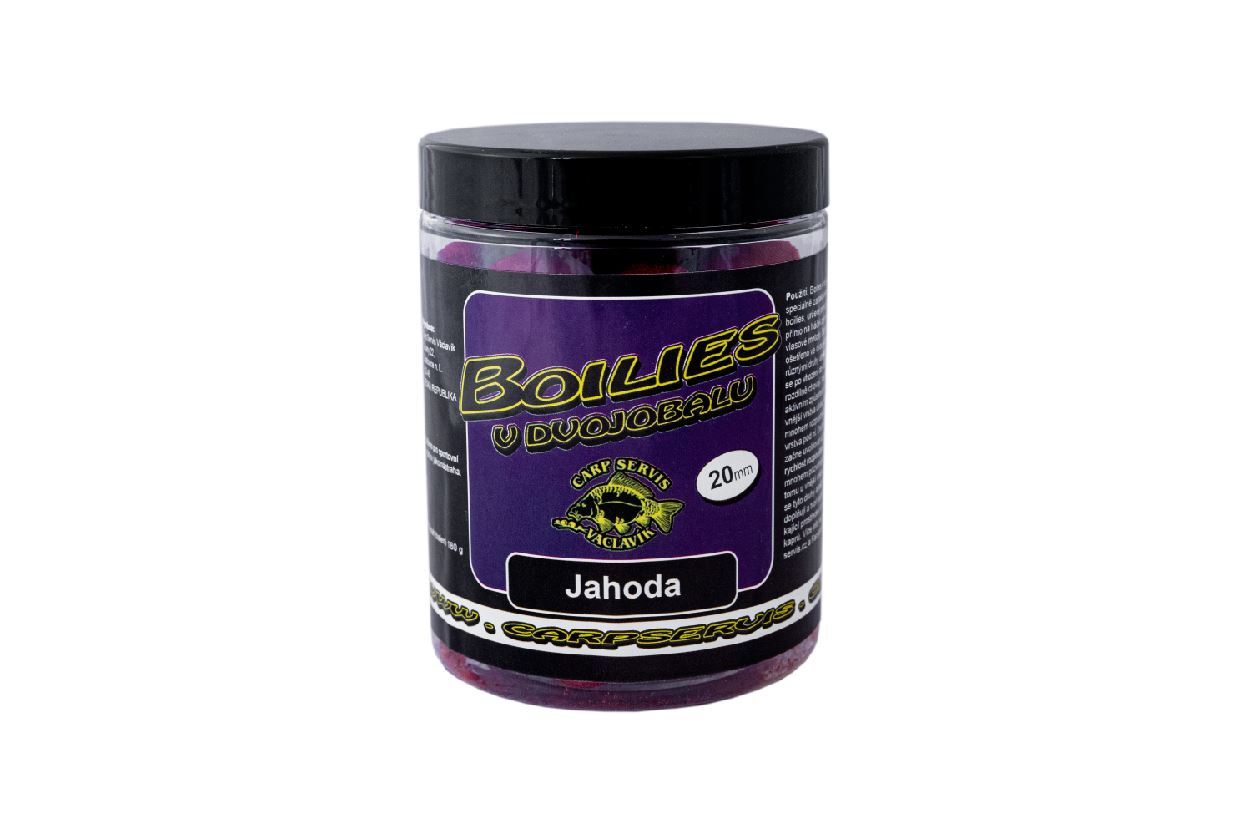 Speziell behandelte Hakenboilies (20 mm). Doppelmantel für max. Attraktivität: äußere Schicht ist hochlöslich für Sofortwirkung. Innere Schicht löst sich langsam. Bewährtes Erdbeer-Aroma.