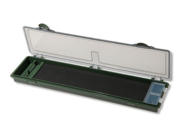 Keine verhedderten Vorfächer mehr. Diese robuste Box hält Ihre Montagen in perfektem Zustand. Innen mit Schaumstoff für Haken und Spannstiften, die das Vorfachmaterial gerade halten (wichtig bei Fluorocarbon).