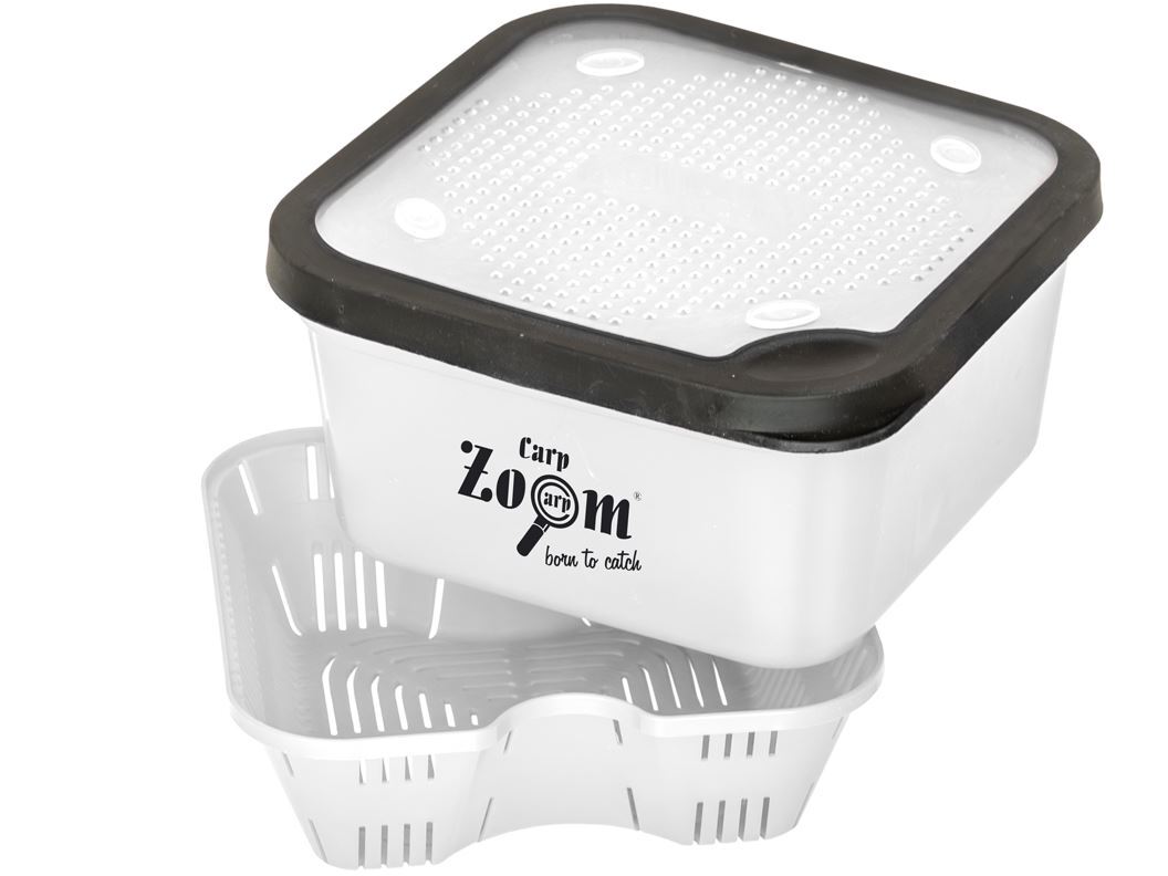 Spezialbox zum Dippen und Einweichen. Mit herausnehmbarem Sieb. Genial einfach: Flüssigkeit einfüllen, Köder rein, ziehen lassen, Sieb anheben.