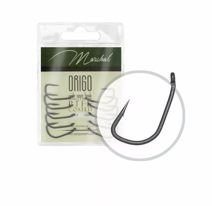 Sehr starker Haken mit weitem Bogen und kurzem Schenkel. Nach innen gebogenes Öhr verbessert den Hakeffekt. Teflonbeschichtung.