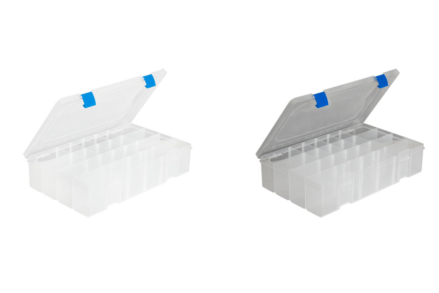Große und vor allem tiefe (8 cm) Box für Angelzubehör. Nimmt auch sperrige Gegenstände wie Posen, Futterkörbe oder Spulen auf. Robuster Kunststoff.