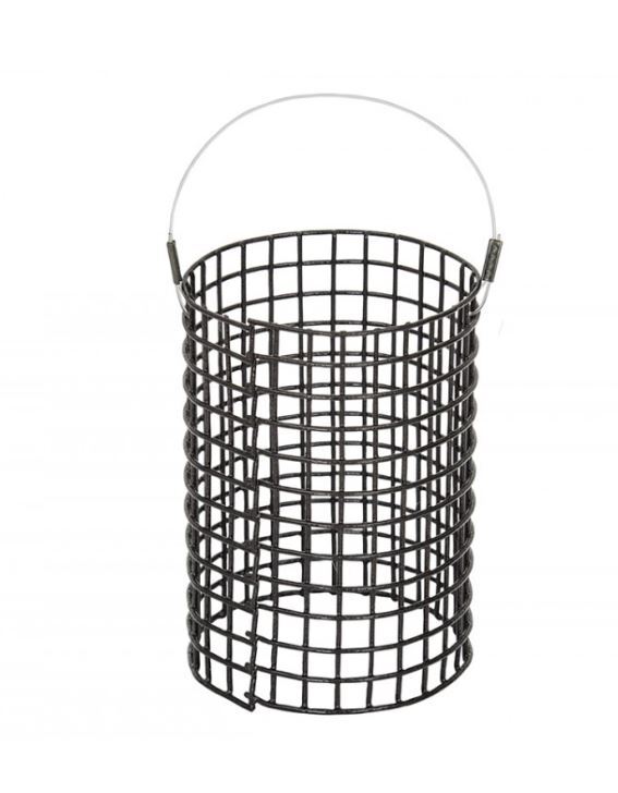 Großvolumiger Futterkorb (5 cm Durchmesser, 7 cm Länge) für das schnelle und effiziente Anlegen eines Futterplatzes. Ideal für das anfängliche massive Füttern mit Partikeln oder Pellets. Der Korb hat kein eigenes Bleigewicht, fasst aber genug schweres Futter für präzise Würfe auch auf Distanz.