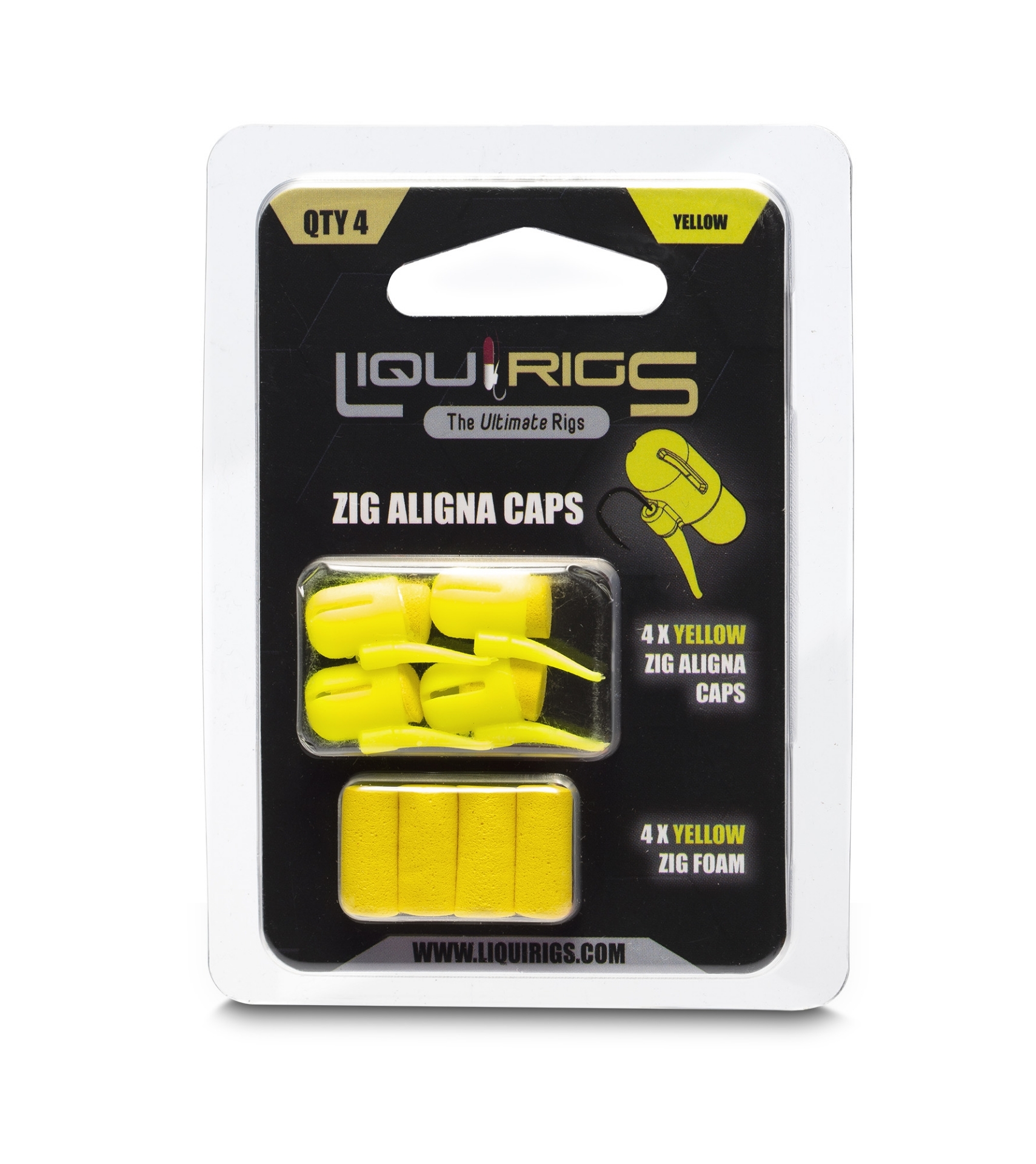 Die Liquirigs Liquid Zig Montage in leuchtendem Gelb ist die ideale Wahl für aktive Fische im Mittelwasser. Gelb wirkt extrem reizvoll und ist auch in tieferen Schichten oder trübem Wasser gut sichtbar. Das Set besteht aus speziellen Alignern für eine aggressive Hakenposition und hochwertigem Schaumstoff mit dauerhafter Auftriebskraft.
