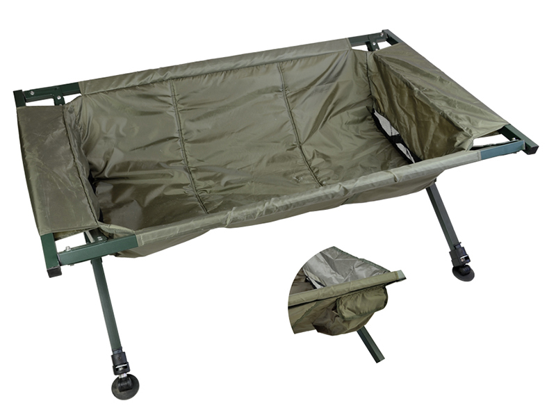 Professionelle Abhakmatte in Wannenform für höchste Fischsicherheit. Dank der tiefen Mulde kann der Fisch nicht herausrutschen. Der Aluminiumrahmen ist leicht und extrem stabil.