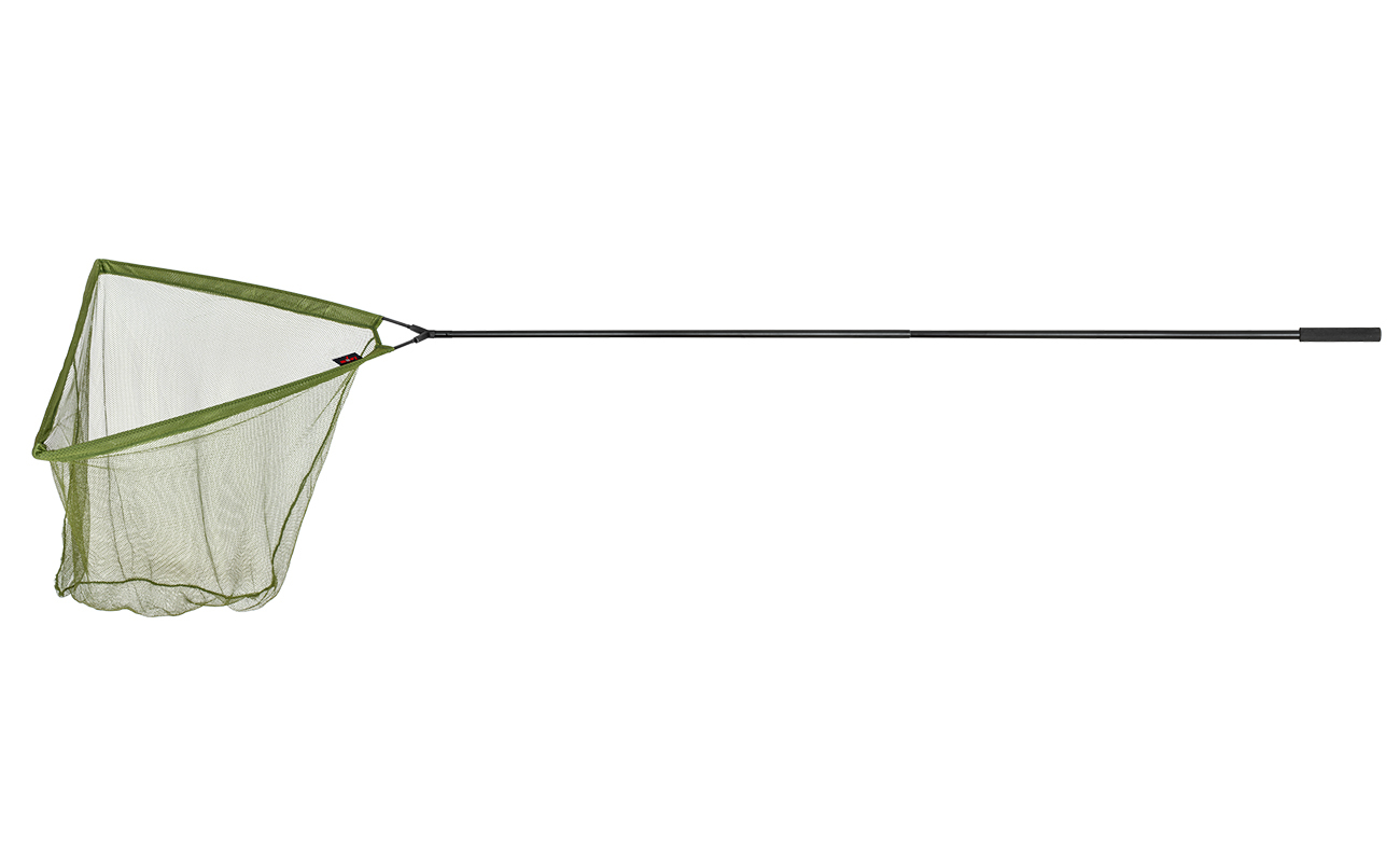 Großer Kescher (100x90 cm) mit extra tiefem Netz (90 cm) für Kapitale. Der zweiteilige Teleskopstiel erreicht 275 cm, ideal für hohe Ufer. Die Arme lassen sich leicht aus dem massiven Block lösen, um den Fisch auf der Matte zu versorgen.