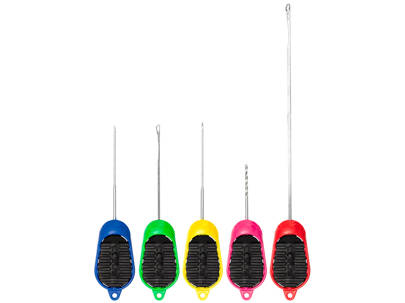 Umfangreiches 5-teiliges Set. Enthält Bohrer und vier Nadeln (2x Klappmechanismus, 2x Widerhaken). Deckt alle Anforderungen für Boilies, Pellets und PVA ab.