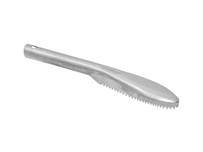 Praktisches Tool zum schnellen Entschuppen. Der gezahnte Edelstahlkopf hebt und entfernt Schuppen effizient, ohne das Fleisch zu beschädigen. Ergonomischer Griff.